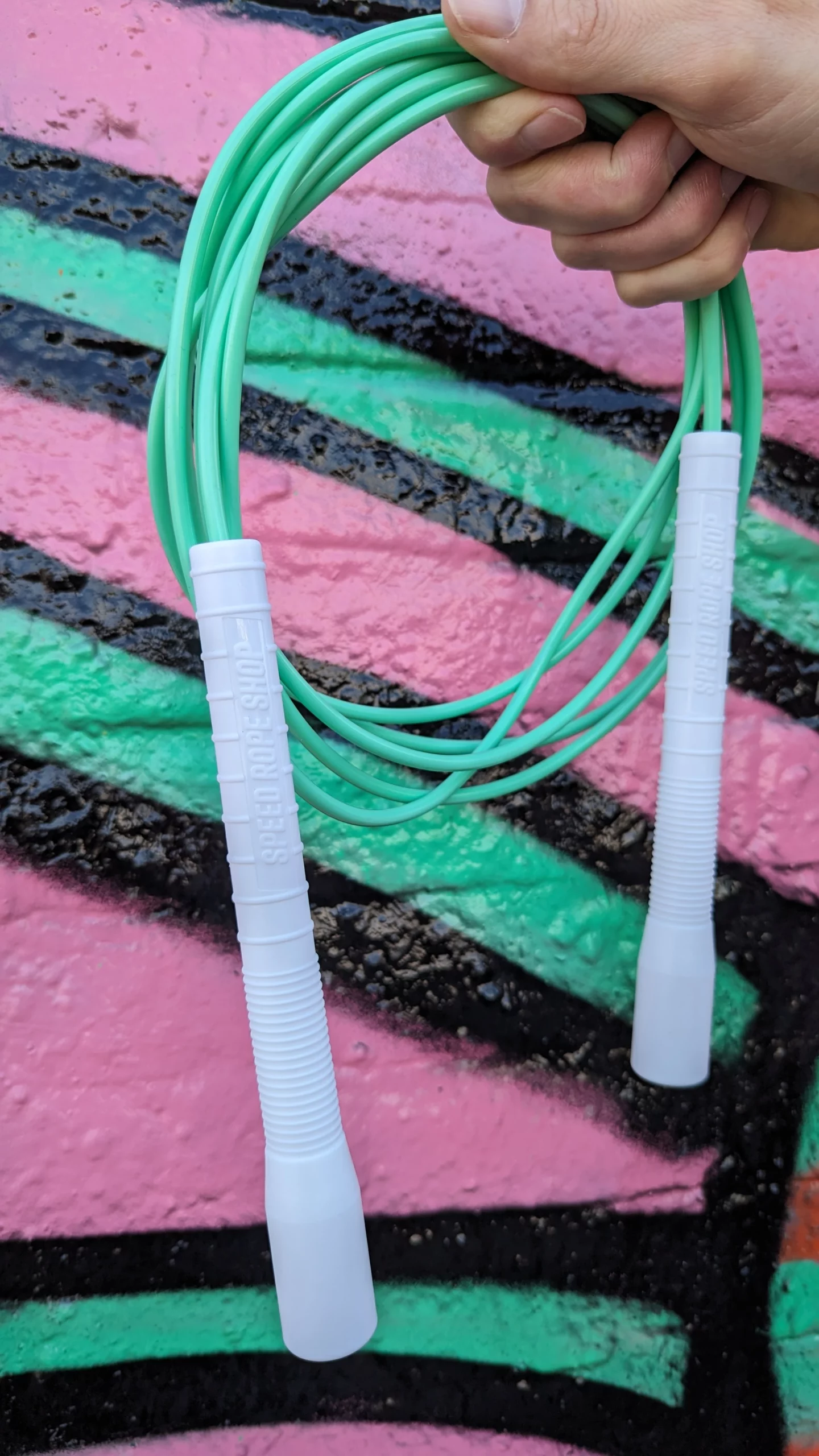 Great rope. I love the longer handles, it was quite hard for me to find a rope with them and am very happy with this one. I was immediately Able to do consecutive crossovers and it has greatly improved my speed in comparison to my old beaded rope.